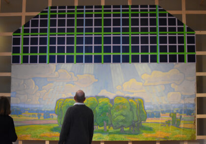 I utställningen har Prinsens stora förstudie till Soltavlan tagits upp från förrådet, rullats upp och placerats på precis den vägg där Prinsen arbetade med den i sin ateljé. Den färdiga Soltavlan innehåller en stor, övre del som inte finns med i förstudien. Den delen har Matts Leiderstam ersatt med en egen kommentar i form av en stor målning på platsen för den övre, saknade delen, där han utgått från förstudiens färger och Prinsens metod att utgå från kvadrater i ett rutnät.
