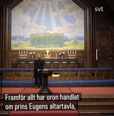 I Djurgårdskyrkan har du kanske sett en annan altartavla av Prins Eugen. Också den föreställer ett landskap. Den kallas Den signade solen. Liksom altartavlan i Kiruna var även den en gåva från Prinsen. Kungligheter får nämligen inte ta betalt för sitt arbete. En liknande målning finns i Östra Reals gymnasium, Solen strålar över staden.